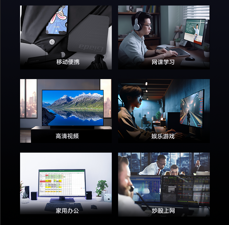 Y-BOX SA1配备1 x USB3.2 Gen1,1 x USB3.2 Gen1(OTG),4 x USB2.0,总共6个USB接口,可以连接各种USB外设,如键盘、鼠标、U盘、打印机、摄像头;支持千兆自适应网口,支持无线上网, 板载 Wi-Fi/BT模块,可选 M.2(2230)规格,满足现代办公环境需要高速数据传输的企业用户,或是追求灵活移动性的家庭用户的需求。