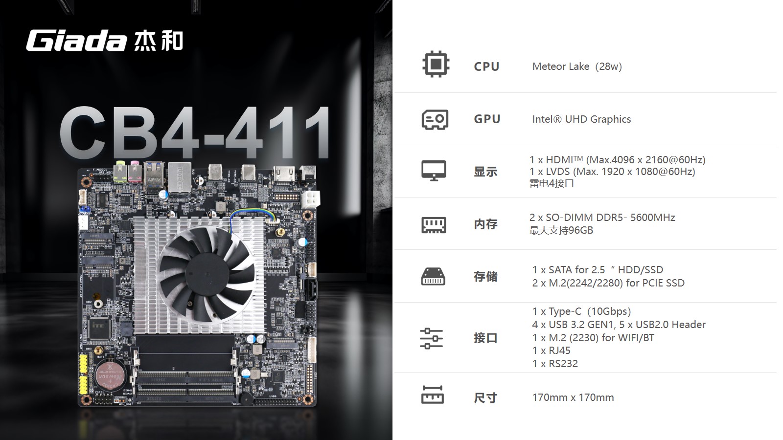 基于人们日渐新增的AI算力需求,米兰体育科技推出AI一体机专用主板——CB4-411。该主板设计紧凑,尺寸仅为170mm x 170mm。