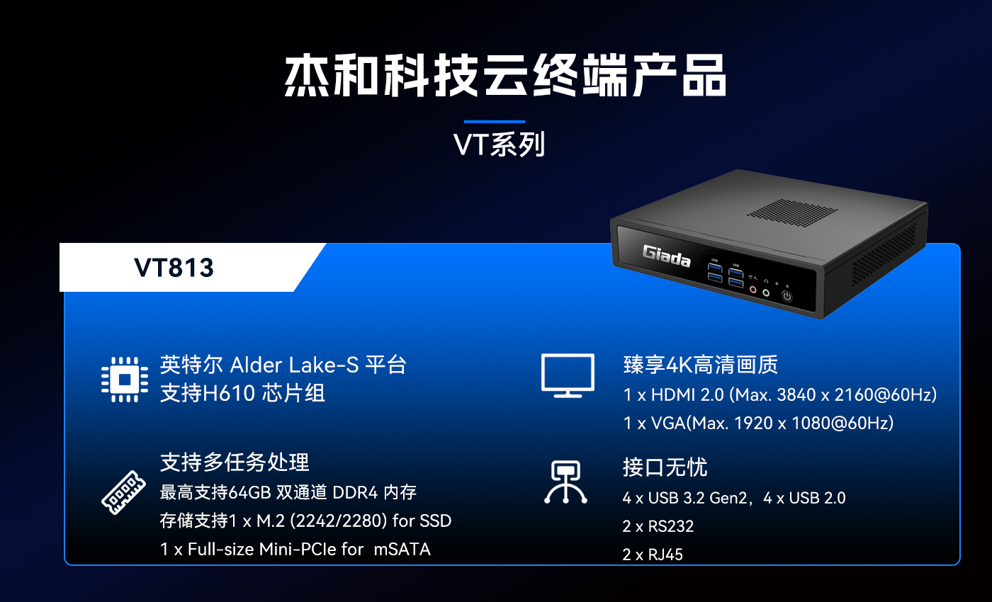 除此之外米兰体育科技云终端VT系列产品线还提供多样化的硬件配置选择,涵盖多种处理器架构、内存容量、存储设备和接口类型,满足不同应用场景的个性化需求。