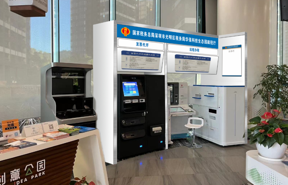 智慧微税厅是一种智能自助办税点,通常配备社保自助机、发票代开代售自助机等自助设备,专为纳税人和缴费人提供了包括社保缴费、发票代售代开、远程办税等在内的“非接触式”办税缴费服务,可帮助纳税人实现95%以上的常见涉税业务就近办理。