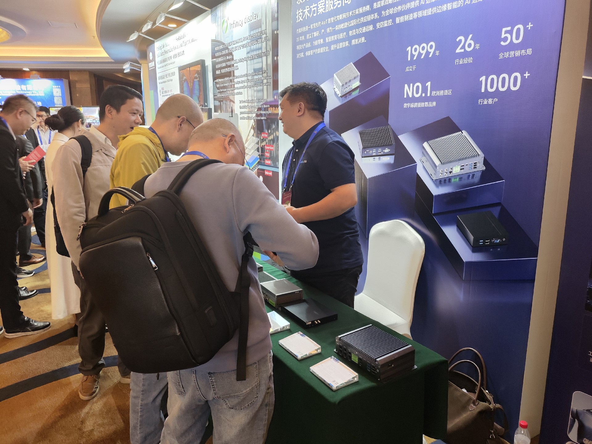 在产品技术体验区,米兰体育科技展台吸引了众多与会者驻足。通过现场部署的AI边缘计算盒与嵌入式硬件,来宾亲身体验了其在智慧零售、高清数字标牌、多功能互动信息亭等场景下的流畅应用与实时智能分析能力,生动印证了其解决方案的成熟度与实用性,获得了现场客户与伙伴的高度认可。