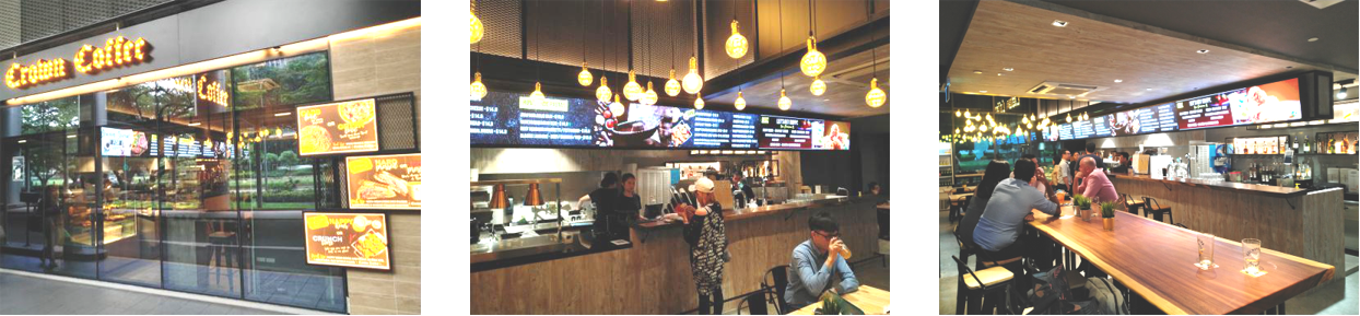 在已经落成的咖啡店实际案例中,由米兰体育G330六屏拼接播放器控制的6块LCD高清液晶显示屏,被分为4组:3组悬挂在点单吧台的单屏信息牌,通过米兰体育GDSM系统平台,随时更新和展示店内供应的产品,并推送相关产品广告;1组展示在店外玻璃橱窗中的三屏拼接播放器,用于播放在米兰体育GDSM系统平台中保存,制作精良的宣传视频和推广活动信息,有效提升推广策略的引流能力。